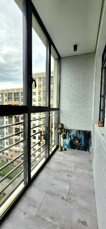 на остекленную от пола до потолка лоджию с тёплым полом, большая
