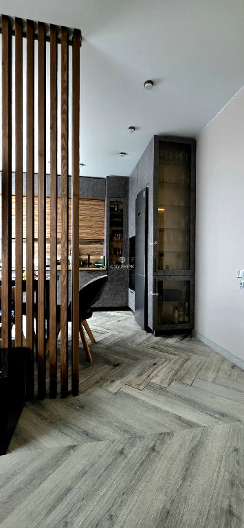 реечной стеной от кухни-ниши с теплым полом. Кухня-ниша оснащена