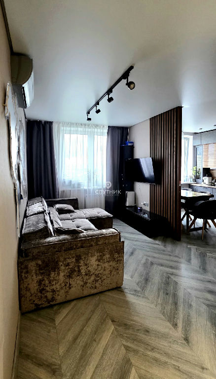 современная гостиная с кондиционером отделённая стеной и декоративно